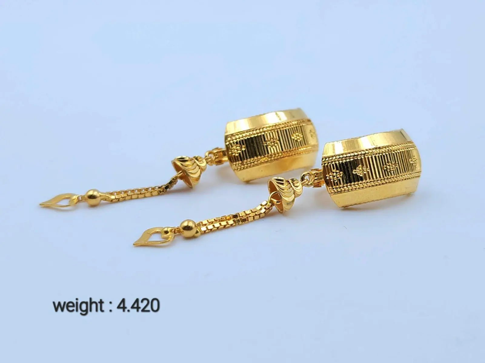 Gold Earrings ( Baali ) This beautiful earrings is perfect for all women. No meena no colour no stone plain yellow gold tops. This is hallmarked jewellery 22k/916 lab tested. weight : 4.420gm From : Avani Jewellers
