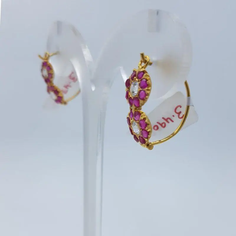 Himachali Chamba Bali Pair With Pink and White Stone and Amazing Design